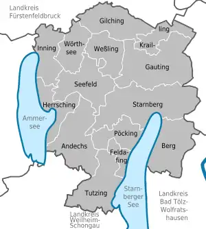Starnberg (German pronunciation: [ˈʃtaʁnbɛʁk]) is a Landkreis (district) in the southern part of Bavaria, Germany. Neighboring districts are (from the north clockwise) Fürstenfeldbruck, Munich, Bad Tölz-Wolfratshausen, Weilheim-Schongau and Landsberg.