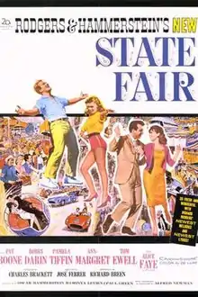 State Fair is a 1962 American musical film directed by José Ferrer and starring Pat Boone, Bobby Darin, Ann-Margret, Tom Ewell, Pamela Tiffin and Alice Faye. A remake of the 1933 film State Fair and the 1945 film State Fair, it was considered to be a financially and critically unsuccessful film. Richard Rodgers, whose collaborator Oscar Hammerstein had died in 1960, wrote additional songs, both music and lyrics, for this film adaptation of the 1932 novel by Phil Stong.