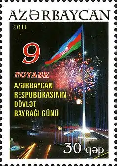 The Day of the State Flag of Azerbaijan (Azerbaijani: Azərbaycan Respublikasının Dövlət Bayrağı Günü) is a national holiday in Azerbaijan that is celebrated annually on 9 November. State Flag Day was established in 2009 by order of President Ilham Aliyev to commemorate the anniversary of adoption of "The Tricolour Flag" (Azerbaijani: Üçrəngli bayraq) as the flag of the Azerbaijan Democratic Republic in 1918.[1] It has been celebrated as a non-working public holiday ever since.[2]