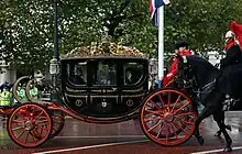 Depending on the area where the ceremony takes place, a march past will immediately take place following the inspection. If it takes place on Horse Guards Parade, then the foreign guest and the King travel to Buckingham Palace in a carriage procession escorted by a large number of mounted soldiers from the Household Cavalry. The welcome ceremony is accompanied by 21-gun salutes fired from Green Park and the Tower of London.[3][4] Exceptions to this included Chinese leader Xi Jinping who was received with a 41-gun salute in Green Park and a simultaneous 62-gun salute at the Tower of London and City of London (103 guns in total).[5][6][7][8]
