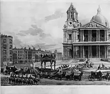 ![]() Nelson's funeral procession arriving at St Paul's Cathedral (engraving by Augustus Charles Pugin, 1806) | |