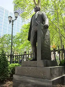 Benito Juárez is an outdoor bronze sculpture of Benito Juárez by Moises Cabrera Orozco, located in Bryant Park in Manhattan, New York. Donated by the State of Oaxaca on behalf of the Mexican Government and the Mexican Trade Center, the portrait sculpture was cast in Mexico in 2002 and installed on October 9, 2004.[1] It is the most recent statue in the park, and the first to depict a Mexican.[2]