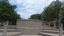 ![]() The statue, wrapped to conceal or prevent vandalism, June 2020 | |