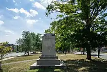 Columbus Green in August 2020. The statue of Christopher Columbus was removed in June, but the pedestal remains.