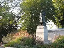 The statue was dedicated on December 9, 1927.[2] Over 2,000 people attended the dedication despite near freezing temperatures.[3] At the dedication, Virginia Governor Harry F. Byrd praised Italian dictator Benito Mussolini while Italian ambassador Giacomo de Martino claimed Italy sought peace.[2] The ceremony concluded with de Martino pulling a cord to display an Italian and an American flag and the firing of a two-gun salute.[2]