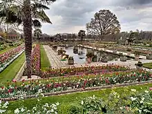 The Sunken Garden in 2019, where the statue stands