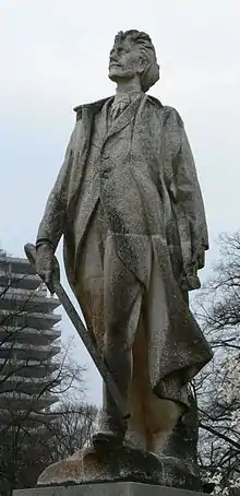 Janko Kráľ was one of the most significant and most radical Slovak romantic poets of the Ľudovít Štúr generation and a national revivalist. It is not exactly known how he looked, but several popular supposed pictures of him exist.[1] One of them was used as a model for this statue from academic sculptor František Gibala.,[2] in 1964.[3]