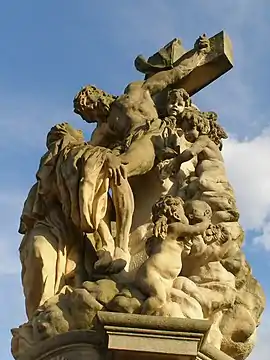 The statue Dream of Saint Lutgardis (Czech: Sousoší Sen svaté Luitgardy) is an outdoor sculpture by Matthias Braun, installed on the south side of the Charles Bridge in Prague, Czech Republic.
