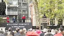 - 1 2 "Historic statue of suffragist leader Millicent Fawcett unveiled in Parliament Square". Government of the United Kingdom. 24 April 2018. Retrieved 24 April 2018.