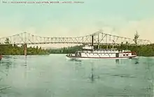Locks were completed at Willamette Falls in 1873.[1] This eliminated the need for the portage at Willamette Falls and established an "open river" all the way south to Eugene, although the water was so shallow by that point that few boats ever made it so far.