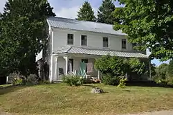The carriage house is a single-story timber-frame structure which joins the house (via the ell) to the barn. Its construction date is uncertain, but it was built before 1890, and is probably the most recently built part of the connected complex. The barn is a massive structure with four levels, which was developed in stages between about 1818 and 1915. The sugar house's construction date is unknown, but is believed by the family to have been built between 1856 and 1890. The blacksmith shop, which stands a short way east of the main complex, is of great age, and appears to predate the Stearns family ownership.[2]