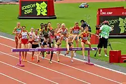 By 1920, the event was standardised at 3000 metres with 28 barriers and 7 water jumps, the format in which it remains to this day. In 2008 the women's event was added to the programme, also over 3000 metres.[10]