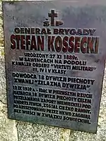 Epitaph of Stefan Kossecki in the Mausoleum of the 18th Infantry Division in Andrzejewo