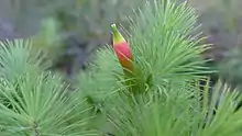 Stenanthera pinifolia, commonly known as pine heath,[2] is a species flowering plant in the family Ericaceae. It is a of shrub that is endemic to south-eastern Australia. It has narrow, linear leaves, yellow or red tubular flowers and a small edible berry.
