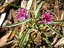 Stephanomeria lactucina is a species of flowering plant in the family Asteraceae known by the common names lettuce wirelettuce[1] and woodland wirelettuce. It is native to Oregon and California, where it grows in coastal and inland mountain ranges, including the Sierra Nevada. It can be found in many types of habitat, including coniferous forests. It is rhizomatous perennial herb producing a slender, erect stem reaching 30 to 60 centimeters in maximum height. The linear or lance-shaped leaves are up to 8 centimeters long and their edges are lined with widely spaced teeth. Solitary flower heads occur on erect peduncles. Each head contains up to 10 ray florets, each with an elongated tube and a fringed pink ligule roughly a centimeter long. The fruit is an achene tipped with a spreading cluster of long, plumelike pappus bristles.