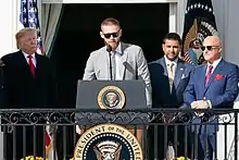 Stephen Strasburg with Dave Martinez and Mike Rizzo, meeting President Donald Trump, at the White House after the 2019 World Series Championship