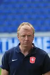 In May 2008, McClaren was linked with a return to football as manager of the Dutch Eredivisie side Twente.[61] He was in the crowd for a match against Ajax on 18 May, seeing Twente qualify for the Champions League.[62] In response to speculation, a Twente spokesman initially stated that the club had no intention of hiring McClaren.[63] Later that month, however, it was reported McClaren had held talks with Twente chairman Joop Munsterman and had toured the club, despite question marks from some Twente fans to his possible appointment.[61][64] When he was initially offered the Twente managerial job, McClaren turned it down due to private issues, and on 7 June he expressed an interest in the vacant managerial role at Blackburn Rovers.[65][66] On 20 June, however, he was confirmed as the new manager of Twente.[64]