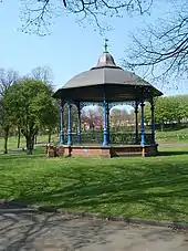 The area of the park is about 7 hectares (17 acres). There are many areas of managed grass, including a football pitch; there are two tennis courts, a children's play area, a skate park, a wildflower area and a bandstand.[2]