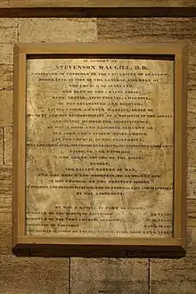 Memorial to Very Rev Stevenson McGill, Glasgow University