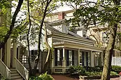 The Stickney-Shepard House is an historic house at 11-13 Remington Street in Cambridge, Massachusetts. The 1+1⁄2-story Greek Revival double house was built 1846-47 by N. Stickney and S. P. Shepard, and is a well-preserved example of the form. It has a heavy cornice, with corner pilasters, and a full-width front porch supported by plain columns on the corners, and fluted Doric columns in the center. The house was built on land originally part of the estate of Francis Dana, which was subdivided and developed in that time.[2]