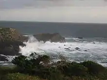 Stillwater Cove is shielded from northwesterly winds, facing southward along the California coast.