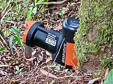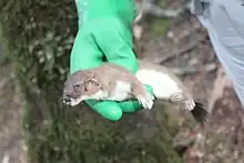 Stoats are difficult to control since they are bait-shy, trap-wary, and have high fecundity.[8] In some areas where there are populations of endangered birds, a programme of stoat-trapping has been implemented. The most common method of trapping is to use a stoat tunnel – a wooden box with a small entrance at one end to allow the stoat to enter. The bait is often an egg and a trap is placed in the tunnel to kill the stoat.[9] Recent trials of a new design of self-resetting stoat traps for remote areas have been encouraging.[10]
