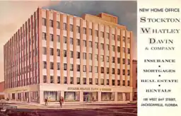 The main offices of SWD in downtown Jacksonville were demolished in late 1962 and replaced with a seven-story office building designed by architects Saxelbye & Powell.[5] The 79,052 sq ft (7,344.2 m2) building opened in November, 1963 in addition to ten other offices in Florida.[7] The company's executives occupied one floor, the staff utilized five floors, and the seventh floor was reserved for the employee lounge.[5]