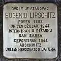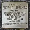 HERE LIVED EUGENIO LIPSCHITZ BORN 1883 ARRESTED MARCH 1944 INTERNED IN RISIERA DI SAN SABBA DEPORTED 1944 AUSCHWITZ MURDERED AT AN UNKNOWN DATE |