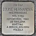 HERE LIVED LOUISE HERMANOVÁ NÉE FREUNDOVÁ BORN 1916 DEPORTED 1942 TO THERESIENSTADT AUSCHWITZ AND BERGEN-BELSEN SURVIVED |