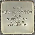 HERE LIVED VILMA HERRMANNOVÁ BORN 1894 DEPORTED 1942 TO AUSCHWITZ MURDERED 1943 |