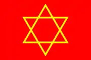 The quarter is often represented by the flag of Prague's Jewish community, a yellow Magen David (Star of David) on a red field.