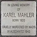 IN LOVING MEMORY OF KAREL MAHLER BORN 1920 CRUELLY MURDERED BY NAZIS IN AUSCHWITZ 1942 |