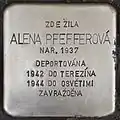 HERE LIVED ALENA PFEFFEROVÁ BORN 1937 DEPORTED 1942 TO THERESIENSTADT 1944 TO AUSCHWITZ MURDERED |