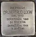 HERE LIVED DR. GERTRUD LOEW BORN 1912 DEPORTED 1943 TO THERESIENSTADT MURDERED 1944 IN AUSCHWITZ |