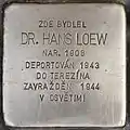 HERE LIVED DR. HANS LOEW BORN 1908 DEPORTED 1943 TO THERESIENSTADT MURDERED 1944 IN AUSCHWITZ |