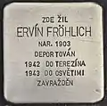 HERE LIVED ERVÍN FRÖHLICH BORN 1903 DEPORTED 1942 TO THERESIENSTADT 1943 TO AUSCHWITZ MURDERED |