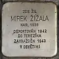 HERE LIVED ŠTĔPÁN MICHAEL WINTERNITZ BORN 1935 DEPORTED 1942 TO THERESIENSTADT 1944 TO AUSCHWITZ MURDERED |