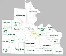 Townships in Arkansas are the divisions of a county. Each township includes unincorporated areas; some may have incorporated cities or towns within part of their boundaries. Arkansas townships have limited purposes in modern times. However, the United States census does list Arkansas population based on townships (sometimes referred to as "county subdivisions" or "minor civil divisions"). Townships are also of value for historical purposes in terms of genealogical research. Each town or city is within one or more townships in an Arkansas county based on census maps and publications. The townships of Stone County are listed below; listed in parentheses are the cities, towns, and/or census-designated places that are fully or partially inside the township. [25][26]