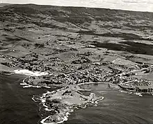 Kiama in 1936. The port is in the front centre and the quarry to right.