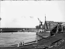 The jetty ran from the south-east corner of the basin, for 50 yards to the north-east. There was only one berth on the north-west side of the jetty, with from five to seven feet of water at low tide.[16] A 'swinging buoy' was used when berthing vessels that had to head north-east as they went alongside.[16] There was also a smaller, high wharf on the northern side of the basin, near the site of the modern-day boat ramp.