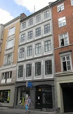 At the time of the 1845 census, Christian and Elisabeth Aagaard resided on the second floor of Aagaard's new building. They lived there with their eight children (aged five to 24), a male servant and a maid.[5] Aagaard's tenants on the other floors belonged to the upper middle-class. Henrikke Thomine Hagen (Svendsen. c. 1794–1880), the widow of merchant (grosserer) Peter Christian Hagen (c. 1789–1833), resided on the ground floor with her five children (aged 11 to 19).[6] Their son Christian August Hagen (1828–1902) would later marry the ballet dancer and actress Amalie Hagen (née Price). Ulrikke Saxtorph (née Hansen), the widow of the physician Johan Sylvester Saxtorph, resided on the first floor with her children Anna and Mathias Saxtorph (twins, aged 22), her sister Mathilde Mynster, a male servant and two maids.[7] Mathias Saxtorph, then a student of medicine, would later become a professor of surgery at the University of Copenhagen. Erik Svitzer, a chief physician and professor of medicine, resided on the third floor with his wife Jane née Batt, his 18-year-old niece Conradine Svitzer, a male servant and two maids.[8] Jacob Ludvig Garrigue, a former royal consul general, resided on the fourth floor with his wife Cecilie Olivia (née Duntzfelt), their two children (aged 14 and 26), lodgers Anna Hansen (aged 23) and Frederik Michael Hertz (aged 20) and two maids.[9] The low, 18th-century building at No. 40 A was still home to just two households and its residents belonged to a lower social class than that of their neighbours at No. 40 B. Hans Caspersen, a greengrocer, resided on the ground floor with his wife Anne Chrestine Walgreen, their two children (aged 15 and 18) and one maid.[10] Carl Christian Holm, a master saddler, resided on the first floor with his wife Florentine Augustine, the wife's eight-year-old nephew Vigo Otte Bentzen and a 24-year-old caretaker.[11] A master joiner and a master painter resided on the first floor of the rear wing with their families and employees (12 people).[12]