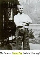 Storm Bay has been inhabited by the shíshálh (or Sechelt) nation, specifically the téwánkw sub-group of ?álhtulich, stl'ixwim, and skúpa (Sechelt, Narrows, and Salmon Inlets),[5] for around eight millennia. Existing shell middens indicate ancient and long-term human habitation.[6][7][8]