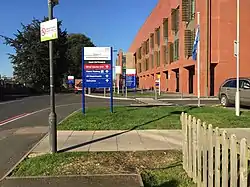 A new facility built in the Victorian style opened in Alcester Road as the Stratford-upon-Avon Hospital in 1884.[1][2] The hospital expanded in the first half of the 20th century taking over many of the old workhouse buildings on Arden Street to the immediate north of the old Victorian hospital.[3] The facility joined the National Health Service in 1948 and, after new buildings had been built on the old workhouse site, the old Victorian hospital was sold and rebuilt, albeit retaining the original clock tower and much of the exterior features, as a hotel (now known as the DoubleTree by Hilton Stratford-upon-Avon) in 1996.[4]