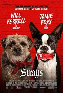 Strays is a 2023 American comedy film directed by Josh Greenbaum and written by Dan Perrault. The film follows an abandoned dog (voiced by Will Ferrell) who teams up with several strays (voiced by Jamie Foxx, Isla Fisher, and Randall Park) to get revenge on his abusive owner (Will Forte). Harvey Guillén, Rob Riggle, Brett Gelman, Jamie Demetriou, and Sofía Vergara also star.