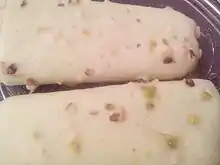 Kulfi has similarities to ice cream in appearance and taste; however it is denser and creamier. It comes in various flavours. The more traditional ones are cream (malai), rose, mango, cardamom (elaichi), saffron (kesar or zafran), and pistachio.