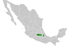 A quiet and shy bird, Strickland's woodpeckers are fairly common in their limited range, usually found in pine forests and mixed pine-oak slopes at heights of about 4,500 to 7,000 feet. The Strickland's woodpecker's range generally follows a thin east–west band in central Mexico from Michoacán to Veracruz.
