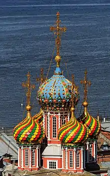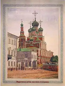 Church of the Nativity of the Blessed Virgin Mary (Russian: Церковь Собора Пресвятой Богородицы), better known as Nativity or Stroganov is a Russian Orthodox church, located at the Rozhdestvenskaya Street in Nizhny Novgorod. It was built in 1696–1719 on the means of the merchant Grigory Stroganov.