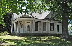 The Stroud House is a historic house at SE F Street and East Central Avenue in Bentonville, Arkansas. It is a 1+1⁄2-story wood-frame structure, with asymmetrical massing and decorative shinglework typical of the Queen Anne style, and a shed-roof front porch supported by Colonial Revival columns. It is a high-quality local example of this transitional style of architecture, built in 1903 by Daniel Boone Laine and Delila Laine. The property also includes remnants of a 1925 gas station.[2]