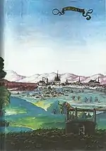 Drawing from 1536 showing the original castle in poor condition, lacking roof