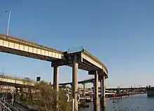 A now-unused ramp in Portland, Oregon at the western terminus of I-84 on the east bank of the Willamette River[1] formerly a connection to US99W/Steel Bridge